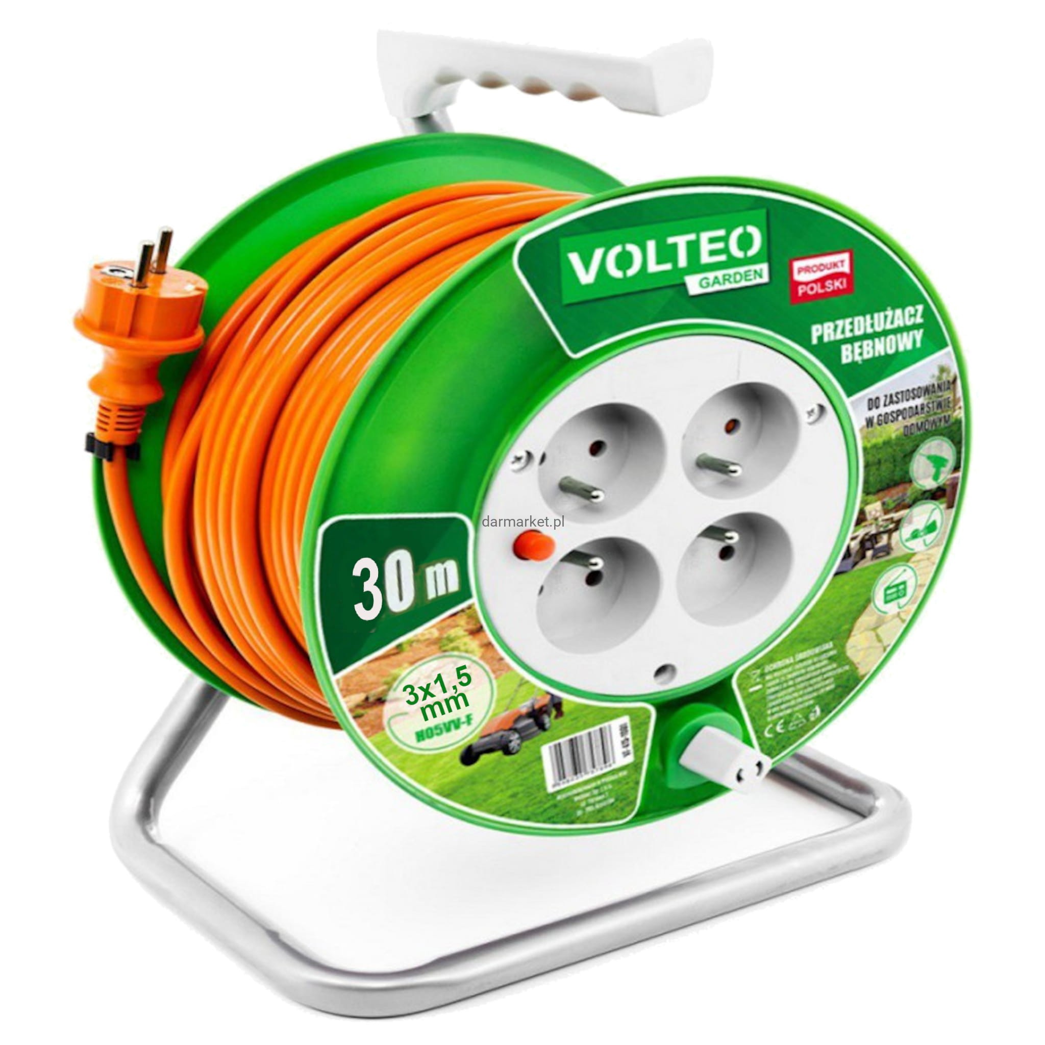 Przedłużacz Bębnowy Ogrodowy 30 m 4 Gniazda 3x1.5 mm² Volteo